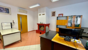 Vchod do administratívnej budovy a dieľne je priamo z prednej časti objektu.  Administratívna budova má v dolnej časti kanceláriu, za ktorou je kuchyňa a WC. Na poschodí sa nachádzajú dve priestranné miestnosti, ktoré sú momentálne využívané na bývanie a kúpeľňa so sprchovacím kútom a WC.  Vykurovanie môže byť kombinované v kancelárii je kozub, odkiaľ sú vyvedené prieduchy aj na poschodie. Okná sú plastové. Úžitková plocha budovy je130 m2.