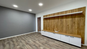 Tento byt má príjemný moderný lukratívny vzhľad. Počas rekonštrukcie bola zväčšená kuchyňa, kúpeľňa premiestnená do bývalej komory. Boli vymenené všetky vedenia, podlahy, stierky, okná, vchodové dvere, sanita. V byte sú vstatvané skrine, na mieru vyrobená kuchynská linka so vstavanými spotrebičmi, chladnička, manželská posteľ, obývačková stena a gauč.