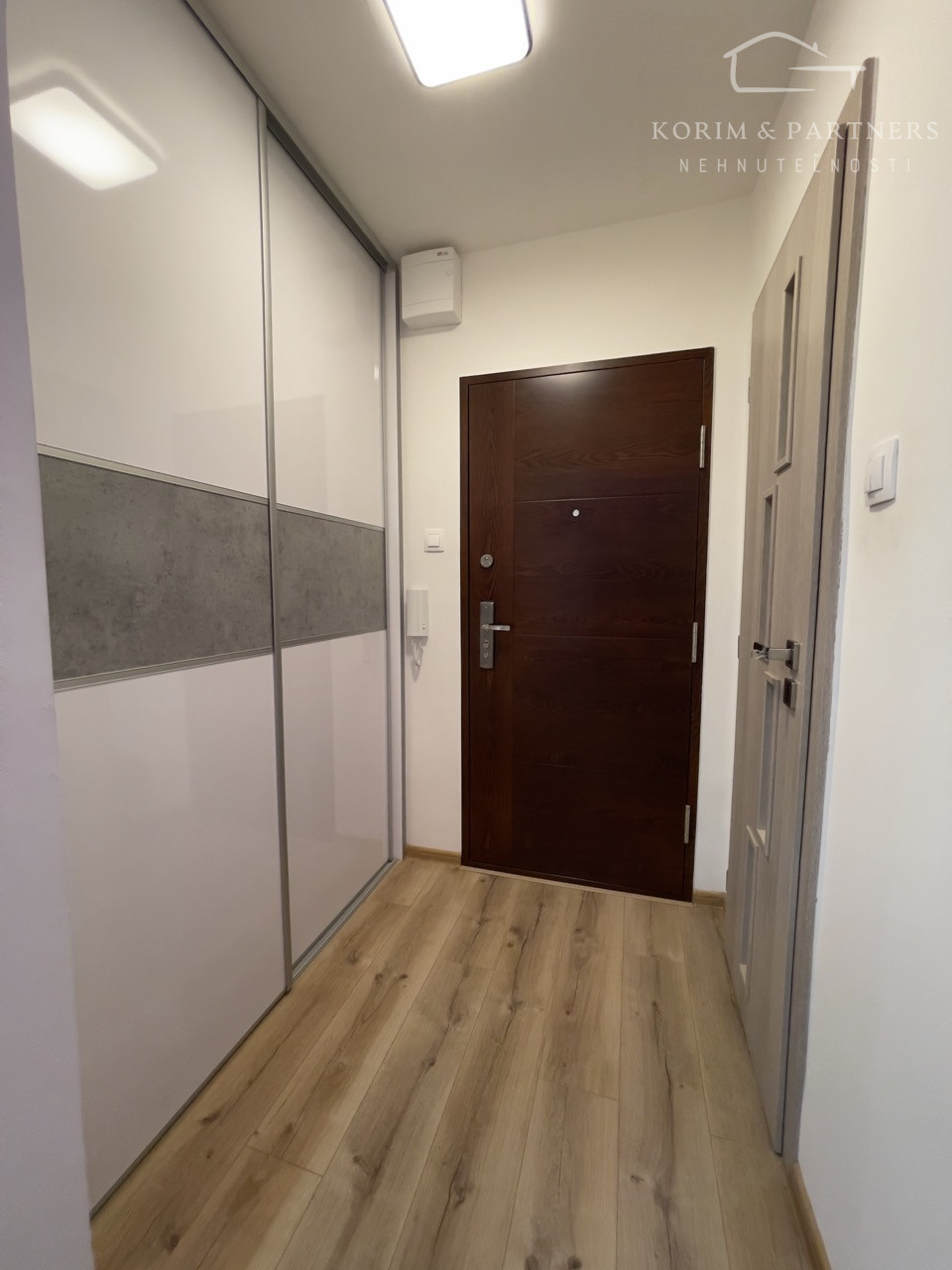 Aké by to bolo bývať zrekonštruovanom 1 izbovom zariadenim byte s rozlohou 28 m2, ktorý pozostáva z izby tvaru L, kuchyne, kúpeľne s WC a predsiene. Vstupné dvere sú bezpečnostné, nové interierové dvere. Okná sú plastové. V kuchyni je na mieru vyrobená kuchynská linka. V kúpeľni je sprchovací kút. V predsieni vstavaná skriňa. Zariadenie pozostáva z práčky, kuchynského stola, stoličiek, chladničky a sedačky, stačí priniesť posteľ.