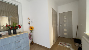 Do druhého bytu sa dostaneme zo spoločnej chodby, ktorá taktiež vedie aj k 1 izbovému bytu a spoločnej miesnosti s kotlom, ktorý zabezpečuje kúrenie v celom dome. Centrálna časť druhého 3 izbového bytu je obývačka, z ktorej vedú dvere do dvoch samostatných izieb, komory a kuchyne. Pri kuchyni je kúpeľna s rohovou vaňou a WC.