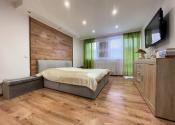 Dispozične pozostáva z troch podlaží, pričom prízemie domu tvorí samostatná hosťovská izba s kozubom, garáž s bránou zn. Hörmann na diaľkové ovládanie a pivničné miestnosti.
