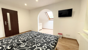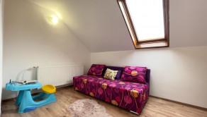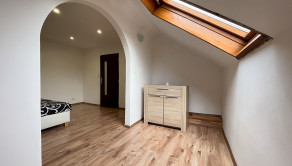 Na poschodí sú 4 samostatné izby, chodba, kúpeľňa a WC. Pôvodne tu bola aj kuchyňa, preto je možné z tohto domu spraviť aj dve samostatné bytové jednotky.