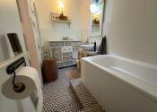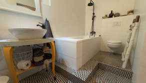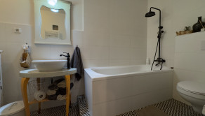 Po prejdení do ďalšej časti bytu cez chodbičku, je naľavo spálňa a oproti kúpeľňa. Okná má tradičné, drevené, aby zvýraznili jeho vidiecky vzhľad. K bytu prislúcha komora a kobka. Parkovanie je zabezpečené pred obytným domom, avšak je možnosť prenajať si k bytu aj garáž, ktorá sa nachádza blízko od bytovky.