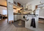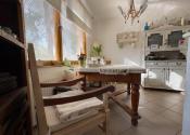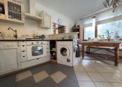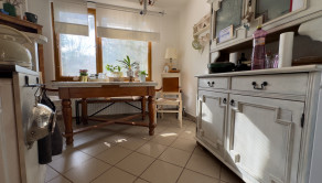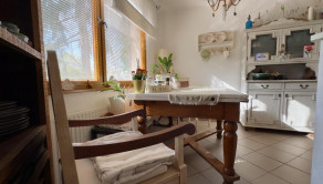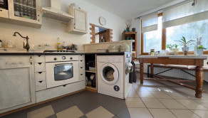 Byt, ktorý sme zaradili do ponuky má navyše originálnu dispozíciu. Nachádza sa v zateplenom bytovom dome na zvýšenom prízemí. Je útulný, svetlý a tichý. Prevedený je v tradičných prírodných materiáloch. Vedú do neho drevené vchodové dvere, za ktorými sa ocitneme v predsieni spojenej s obývačkou, ktorá plynulo prechádza do kuchyne s jedálňou. Kuchynská linka je vyrobená na mieru a má zabudované všetky spotrebiče ako mikrovlnná rúra, el. rúra, plynová varná doska, digestor a práčka. Pri jedálni sa nachádza detská izba.