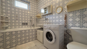 Suterén pod celým domom ponúka ďalšie perspektívy. Dve komory, pôvodnú garáž pre jedno vozidlo, technickú miestnosť, dolnú kúpelňu s WC vhodnú aj na práčovňu so žehliarňou a jednu veľkú miestnosť vo veľkosti obývačky, z ktorej môže byť ďalšia izba.