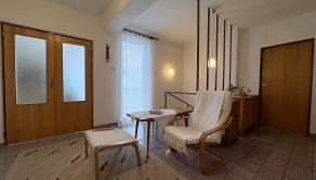 Naľavo od predsiene Vás čaká kuchyňa s malou komorou, ktorá má okno smerom na ulicu. Oproti predsieni sa rozprestiera priam dokonalé mieto pre rodinné chvíle alebo zaujímavé stretnutia v podobe veľkej obývačky s oknami a dverami do átriového dvora, ktorý prináša svetlo, súkromie a pocit pokoja. Vedľa schodiska sú dve oddelené izby s výhľadom na ulicu resp. dvora a priestranná kúpeľňa s WC.