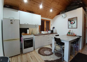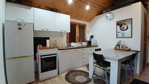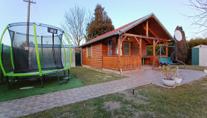 Stojí na mne veľká chata s výmerou 35m2, v ktorej môžeš bývať po celý rok alebo tu tráviť každý volný víkend či poobedie. V chate sa nachádza kuchynská linka s elektrickým sporákom a spotrebičmi, má jedálenskú a obývaciu časť s nábytkom, kúpeľňu so sprchovým kútom, WC a celá je napojená na poplašné zariadenie. Teplú vodu zabezpečuje elektrický bojler, na reguláciu teploty zas využiješ klímu, ktorá na tento priestor bohato stačí. Pred chatou je aj terasa s hojdačkou, na ktorej si pri pohľade na mňa dokonale oddýchneš. A ak by náhodou pršalo, môžeš si vnútri zapnúť satelitnú TV.