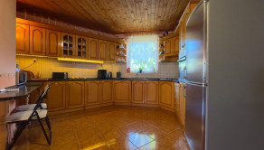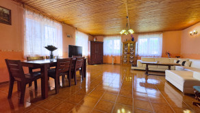 Tento rodinný dom je postavený na skoro 30 árovom pozemku. Má 180 m2 zastavanej a 150 m2 úžitkovej plochy, samostatnú garáž s veľkosťou 49 m2, nad ktorou je podkrovná obytná izba so sprchou a WC a 20 m2 prízemnou kuchyňou.