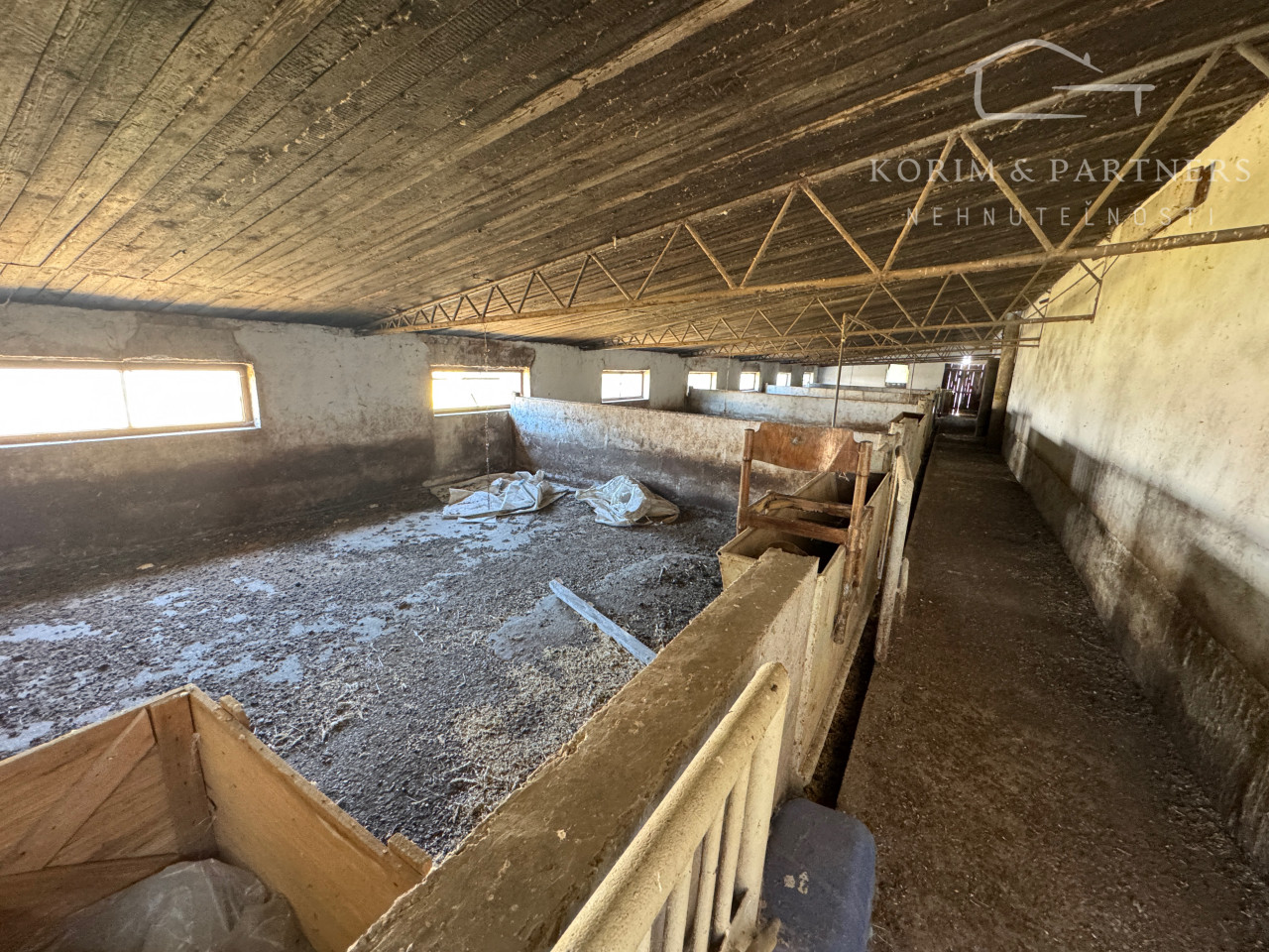 Pozostáva z maštalí, garáže pre poľnohospodárske stroje, skladov a rodinného domu. Najväčšia budova, ktorá je zároveň maštaľ má 1320 m2 úžitkovej plochy a menšia 430 m2. Garáž má 210 m2 a je tesne pri rodinnom dome s veľkosťou 145 m2, preto sa dá do nej dostať aj priamo z domu. Na pozemku, ktorý je celý oplotený, sa ďalej nachádzajú dve skladové budovy, jedna s veľkosťou 445 m2 a druhá 400 m2, pričom táto je toho času prenajatá. Pri sklade sa nachádza ešte sušiareň. Objekt je odkanalizovaný do žumpy, voda je z vlastnej studne a je v ňom zavedená elektrina 230/400 V.