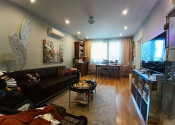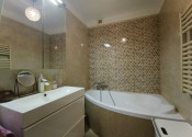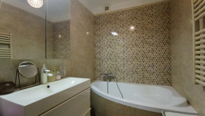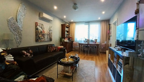 Po vstupe cez bezpečnostné dvere sa ocitáte v predsieni s masívnou zabudovanou skriňou. Na ľavej strane sa nachádza vchod do detskej izby s výhľadom na ihrisko, napravo zas kúpeľňa s veľkou rohovou vaňou a samostatné WC Geberit. Z predsiene sa prechádza do veľkej klimatizovanej obývačky s gaučom a jedálenským stolom. Z nej môžete prejsť do spálne s množstvom úložného priestoru alebo do kuchyne, ktorá je zariadená modernou kuchynskou linkou so vstavanými spotrebičmi (chladnička, mraznička, ostrovčekový elektrický sporák s digestorom, umývačka riadu, práčka, mikrovlnná rúra, a pod.)