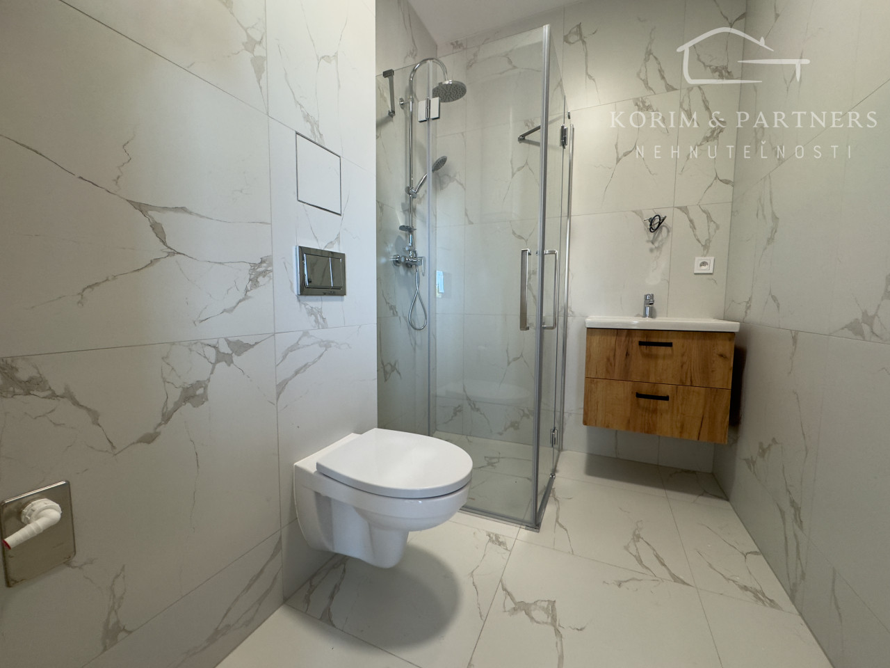 Byt, ktorý ste našli v našej ponuke vyniká nie len tým, že sa nachádza v tomto komplexe, ale navyše má dva veľké balkóny, jeden s výhľadom na ulicu a druhý do dvora. Nachádza sa na II. poschodí v schodišti 12 s výťahom. Úžitková plocha bytu je 37,14 m2. Dispozične ju tvorí vstupná chodba, pri ktorej je kúpeľňa so sprchovacím kútom a WC. Oproti kúpeľni je prvý sponenutý balkón do dvora. Naprieč kuchyňou sa dostaneme do izby, ktorá má balkón smerom na ulicu. Kúrenie v byte je podlahové, elektrické. Teplú vodu zabezpečuje elektrický bojler. Vstupné dvere sú oceľové, ohňovzdorné. Okná a balkónové dvere sú plastové. Na podlahe sú plávajúce parkety a dlažba.