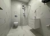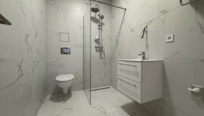 Byt, ktorý ste našli v našej ponuke má veľký balkón s rozlohou 9,9 m2 a s výhľadom na ulicu. Úžitková plocha bytu je 29,6 m2. Dispozične ju tvorí vstupná chodba, pri ktorej je kúpeľňa so sprchovacím kútom a WC. Ďalej sa pokračuje do kuchyne, ktorá je moderne prepojená s izbou, ktorá má balkón smerom na ulicu. Kúrenie v byte je podlahové, elektrické. Teplú vodu zabezpečuje elektrický bojler. Vstupné dvere sú oceľové, ohňovzdorné. Okná a balkónové dvere sú plastové. Na podlahe sú plávajúce parkety a dlažba.