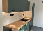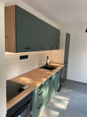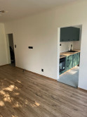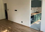 Momentálne prechádza rekonštrukciou a bude vyzerať podobne ako na fotografiách. Dispozícia bude taká, že po vstupe do predsiene na pravej strane je izba a napravo WC. Oproti vchodovým dverám su dvere do obývačky. Izba vedľa obývačky bude zväčšená. Kuchyňa je priestranná, nakoľko kúpeľňa bola premiestnená do komory. Ohrev vody zabezpečí elektrický bojler.