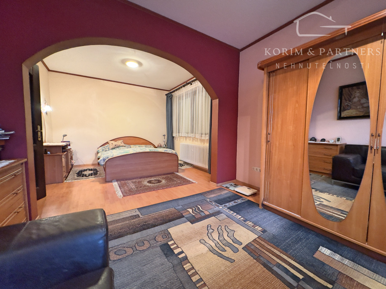 Je prakticky samostatná bytová jednotka tohto domu, nakoľko pozostáva z jednej spálne, veľkej pracovne, ďalšej izby, ktorá by mohla byť aj kuchyňa, pretože má komoru, veľkej kúpeľne, samostatného WC a technickej miestnosti.