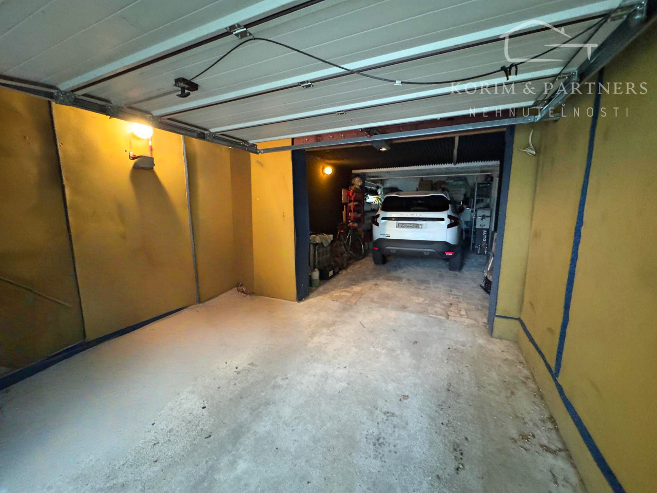 Rodinný dom má na prízemí garáž s dvomi parkovacími miestami za sebou a jednu odkladaciu miestnosť. Garážová brána je na diaľkové ovládanie značky " Hormann ". Hneď vedľa garáže sa nachádzajú vstupné dvere do domu, za ktorými je chodba, ktorá vedie popri skriniach až ku schodisku do sutrénu a na medziposchodie.