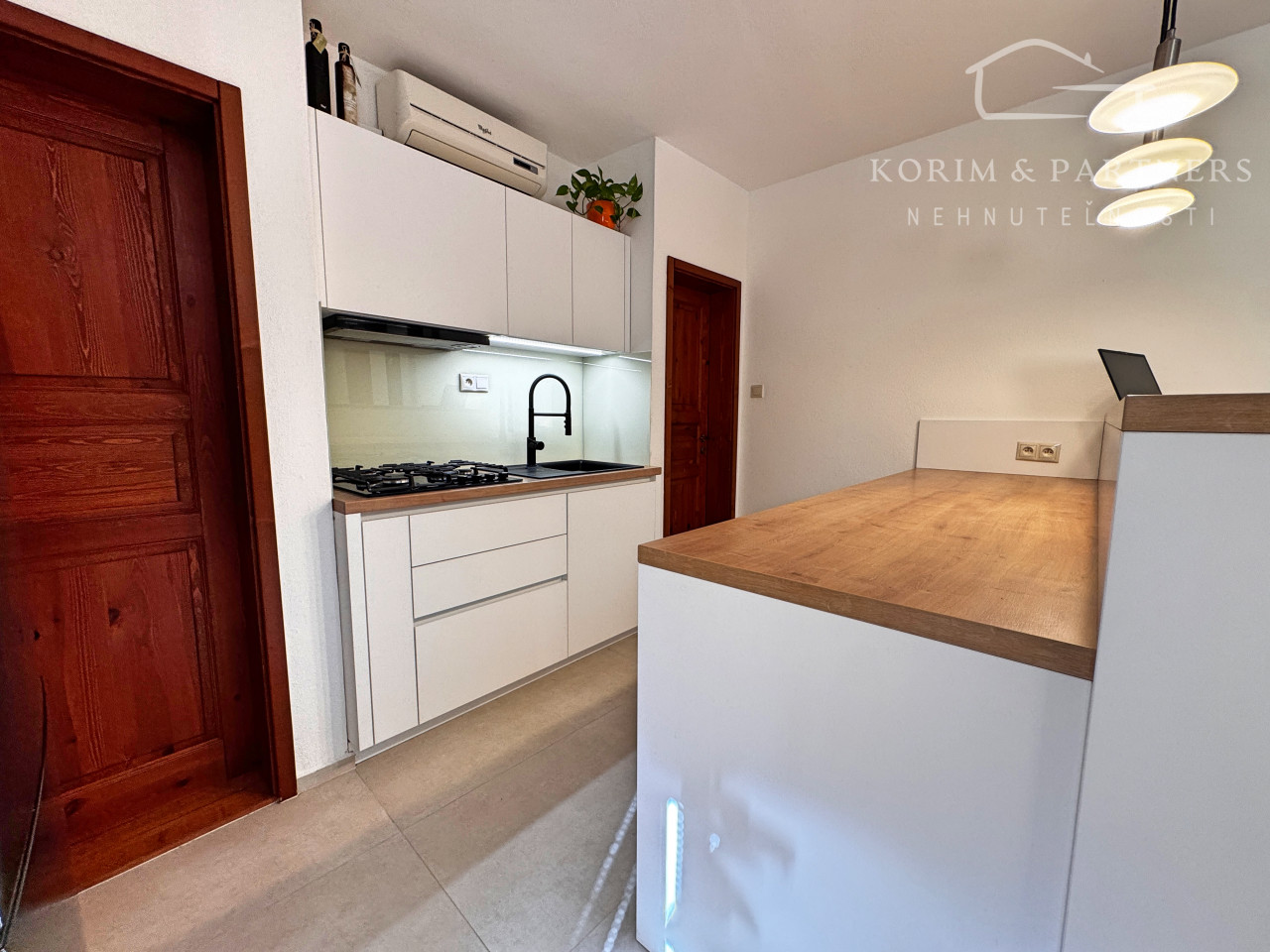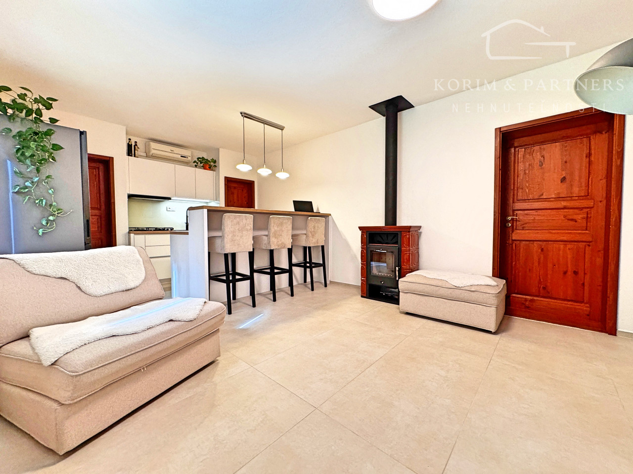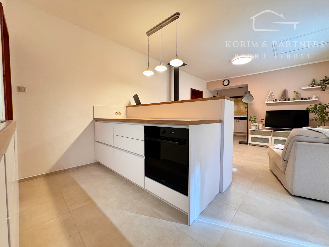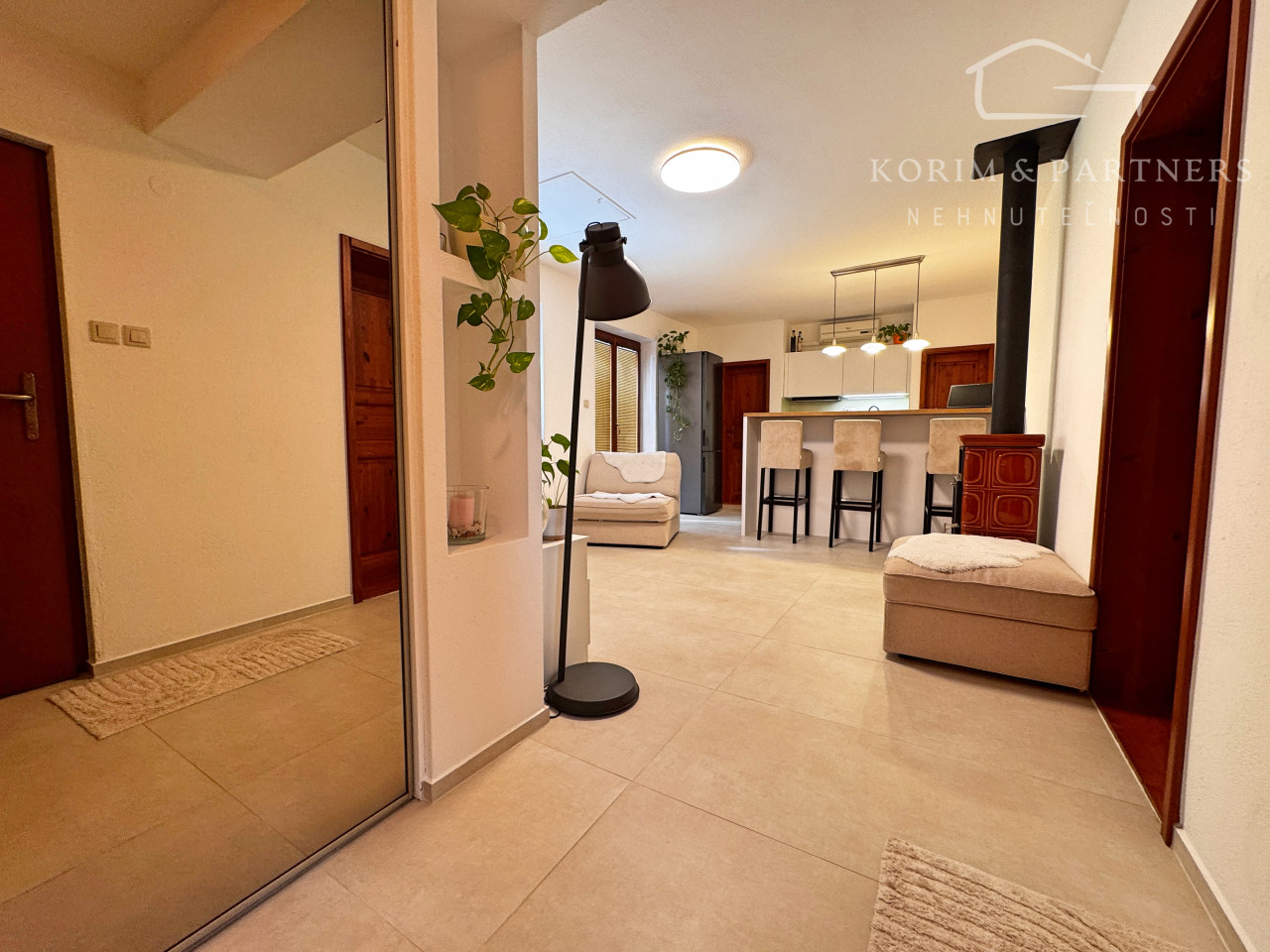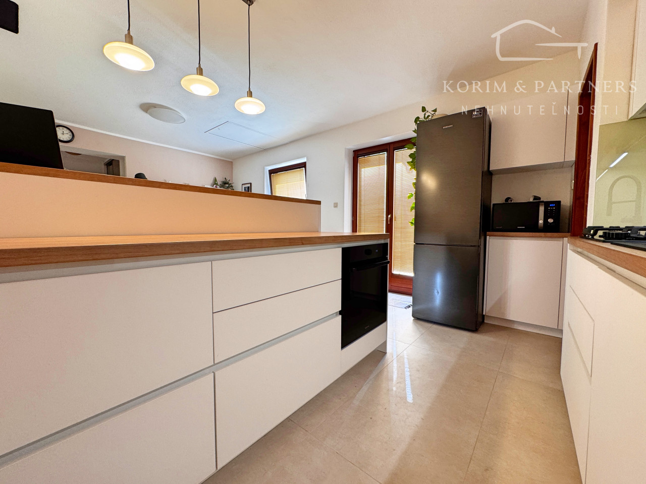 V predsieni, hneď oproti hlavnému vchodu do domu je vstavaná skriňa. Súčasťou kuchyne je barový pult a na mieru vyrobená kuchynská linka so vstavanými spotrebičmi. Na podlahách je drevená paľubovka a keramická dlažba. Okná a dvere na terasu sú drevené (eurookná). Kúrenie a ohrev teplej vody je zabezpečený plynovým kotlom zn. Protherm, ale v obývačke je taktiež keramická voľne stojaca piecka. Dom je odkanalizovaný do žumpy. Mesačné náklady sú vo výške 175 €.