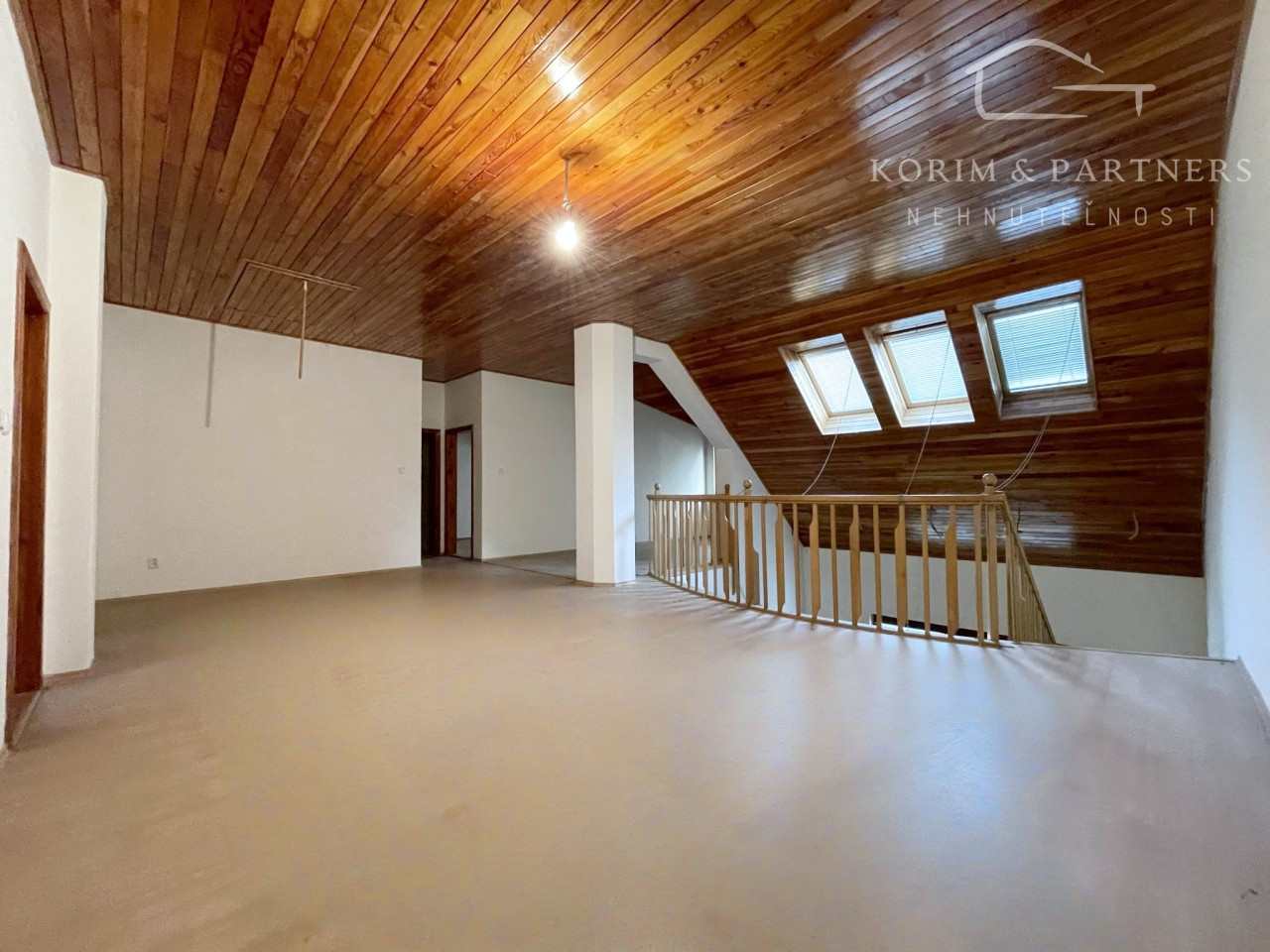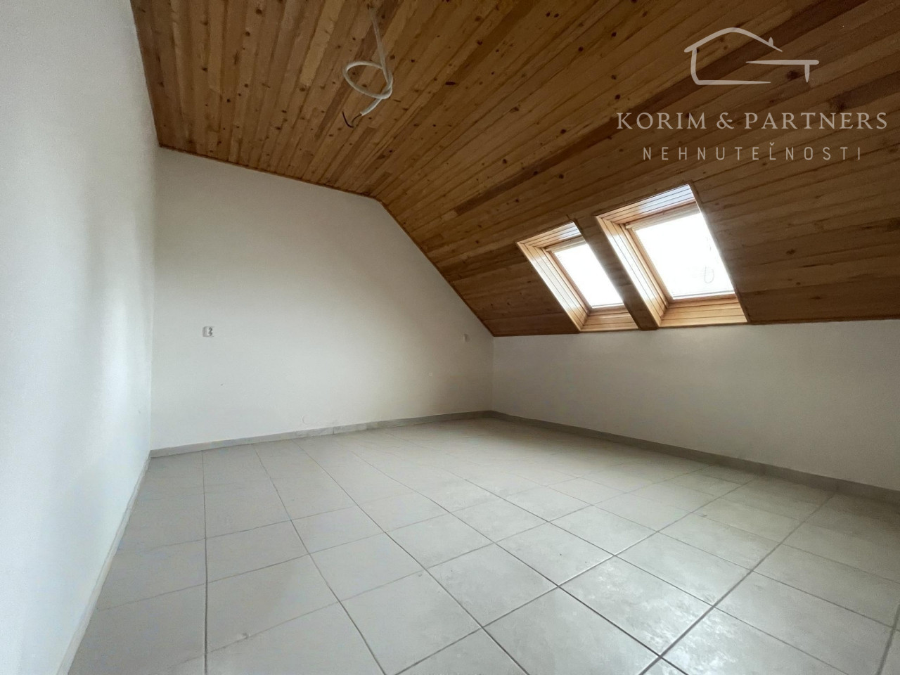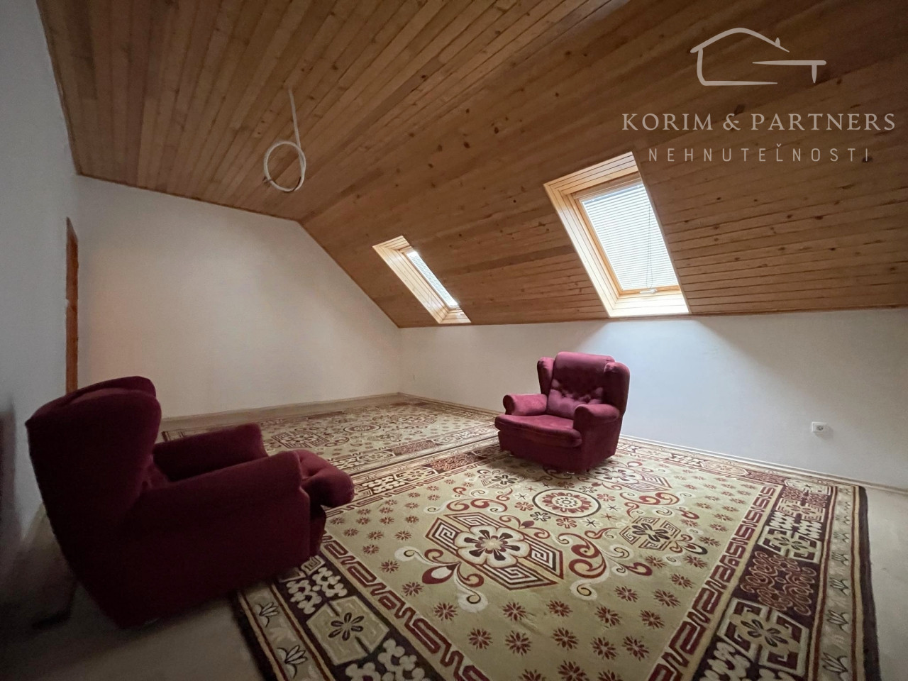 V podkroví je otvorená galéria, ďalšie tri priestranné izby a miestnosť pre kúpeľňu s WC, pripravená na dokončenie podľa vlastných predstáv.