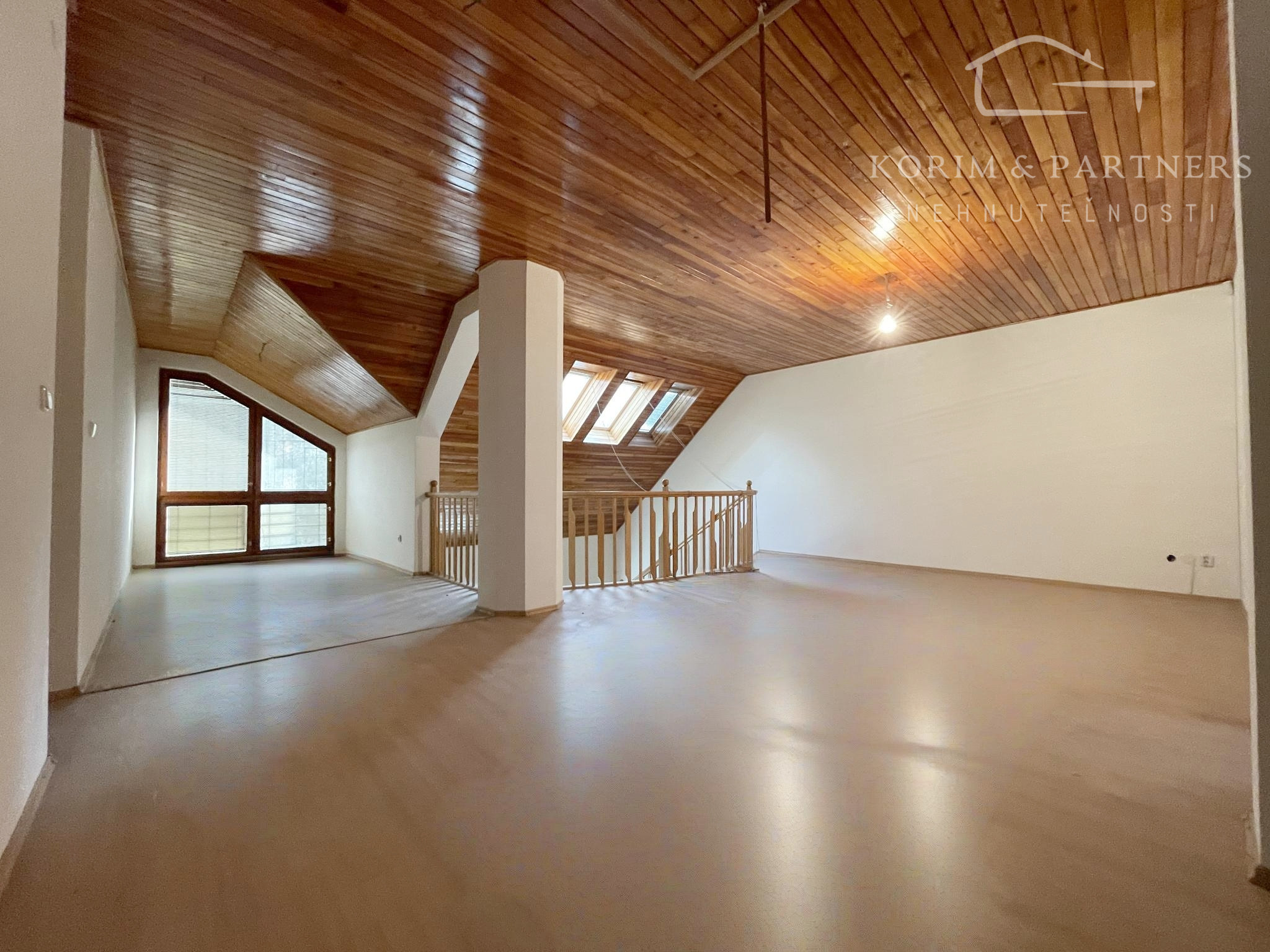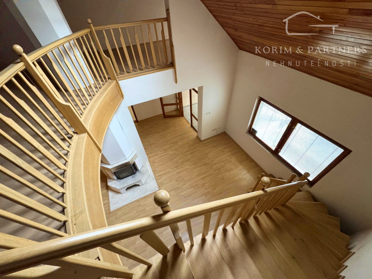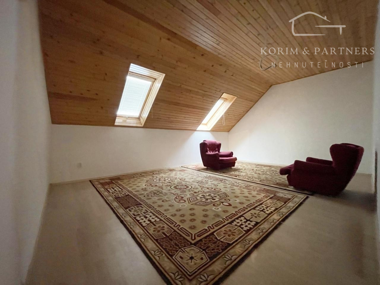 V podkroví je otvorená galéria, ďalšie tri priestranné izby a miestnosť pre kúpeľňu s WC, pripravená na dokončenie podľa vlastných predstáv.