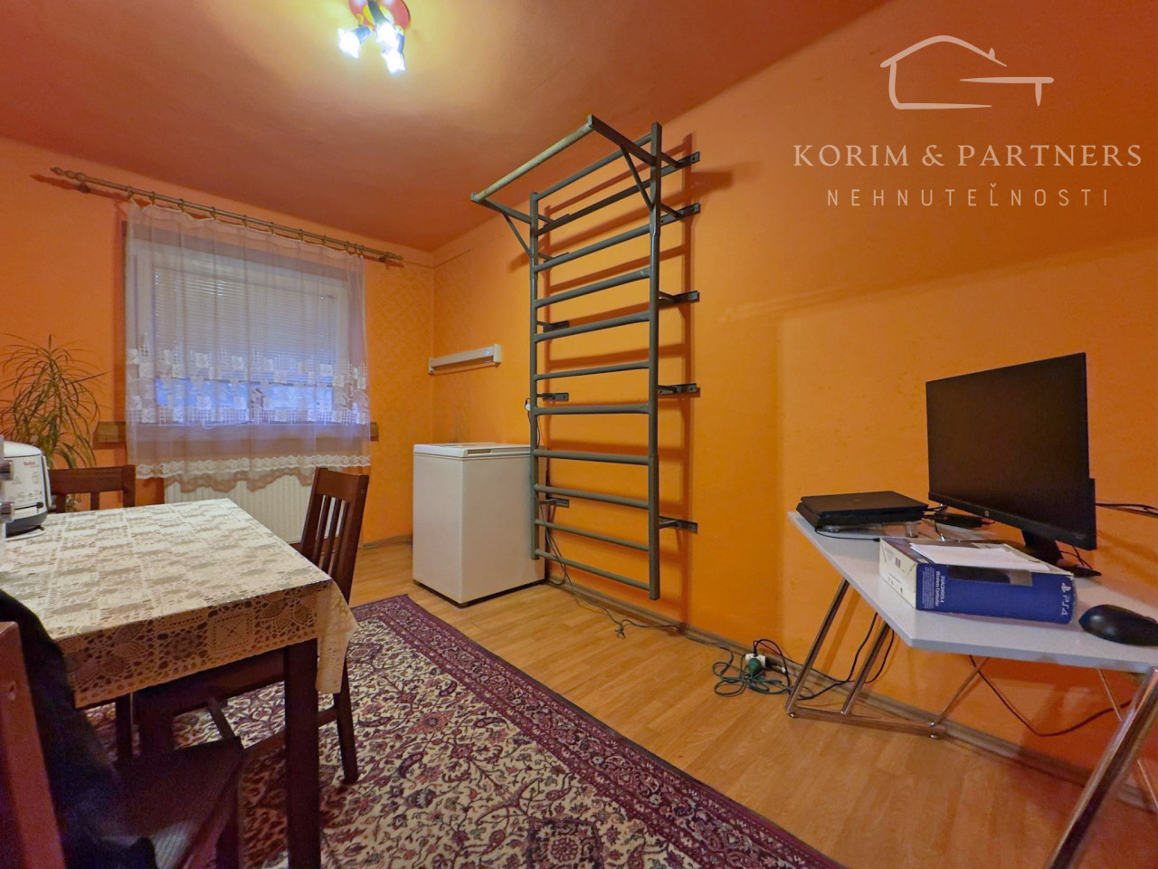 Aktuálna dispozícia bytu pozostáva z troch izieb, pretože kuchynská linka bola počas rekonštrukcie prenesená do predsiene. V kúpeľni zároveň bola vaňa nahradená sprchovacím kútom. Denné svetlo aj v tejto časti bytu zabezpečuje okno. Byt je na zvýšenom prízemí na ulici E. B. Lukáča v Komárne. Okná má plastové, má aj nové radiátory a v predných izbách palubové dosky a v spálni na stenách tatranský profil, ktorý ešte viac umocňuje príjemnú atmosféru, tlmí zvuk a skvelo vyzerá.