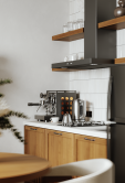 Kuchynský kút s chladničkou, sporákom, digestorom a drezom