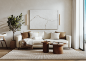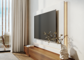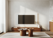 - Obývačka s komfotným gaučom, televízorom, konferenčným stolíkom a jedálenským stolom