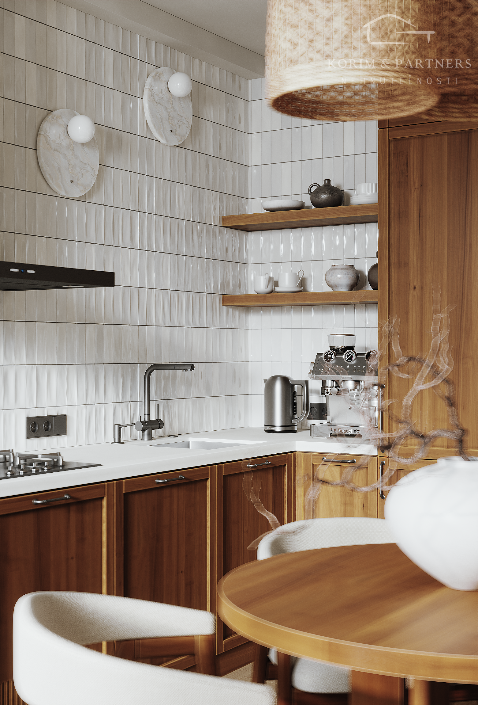 - Kuchynský kút je vybavený sporákom, rúrou a digestor