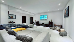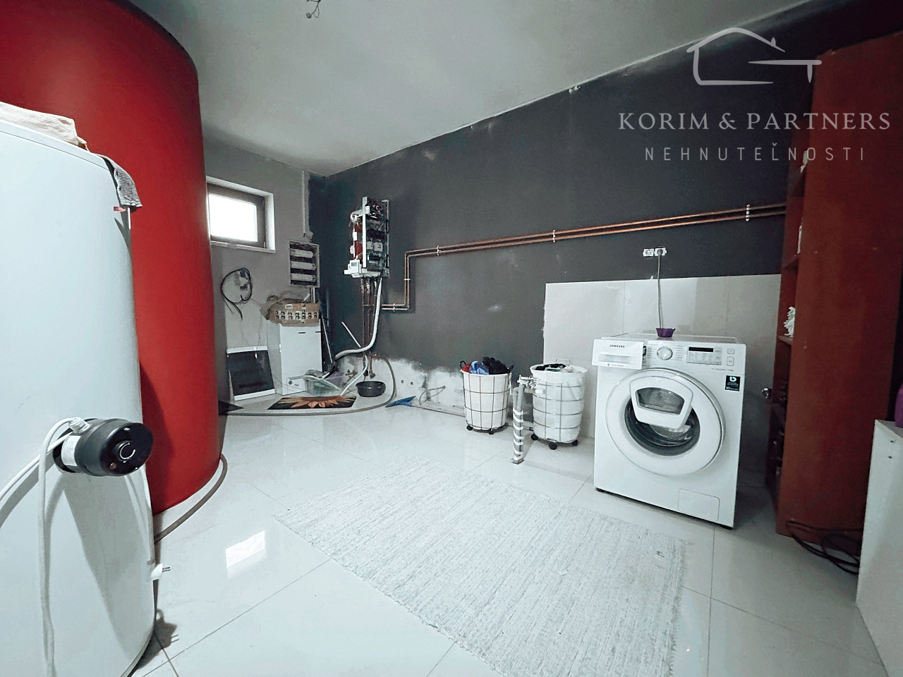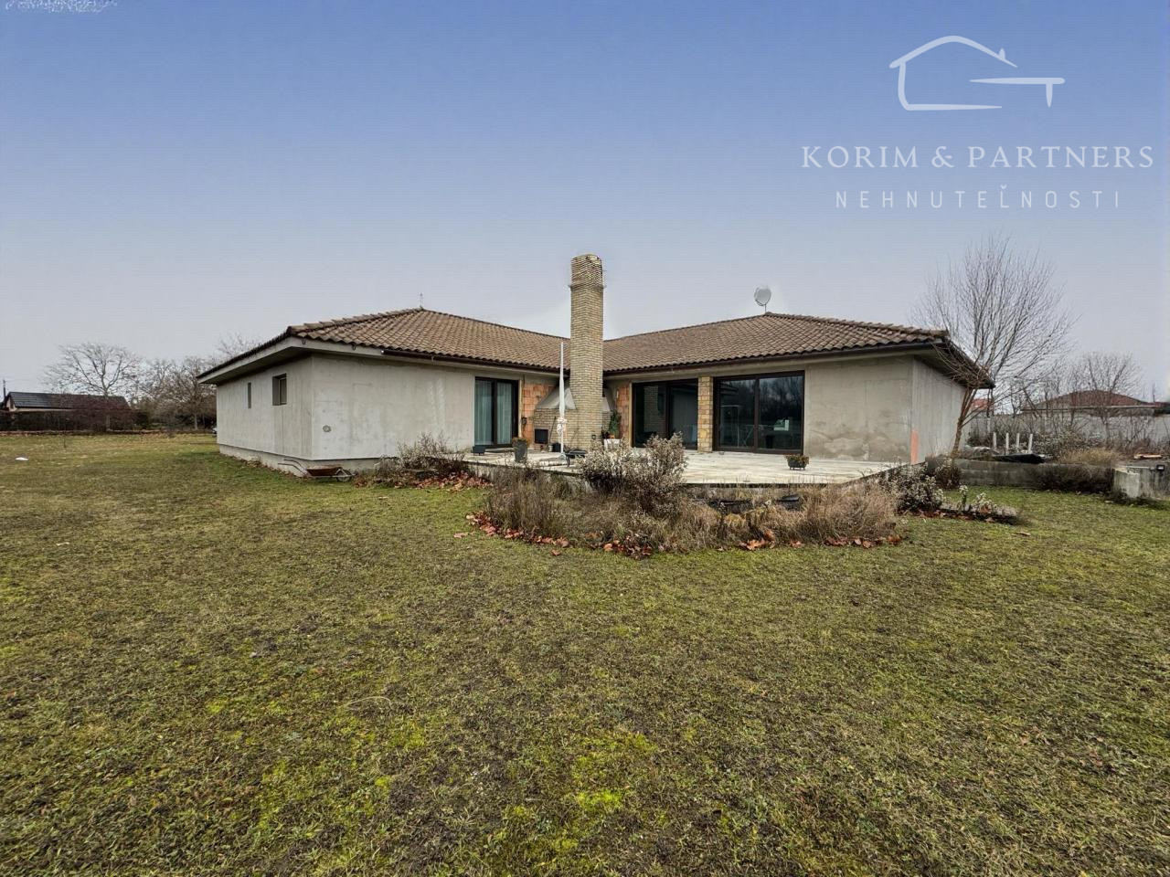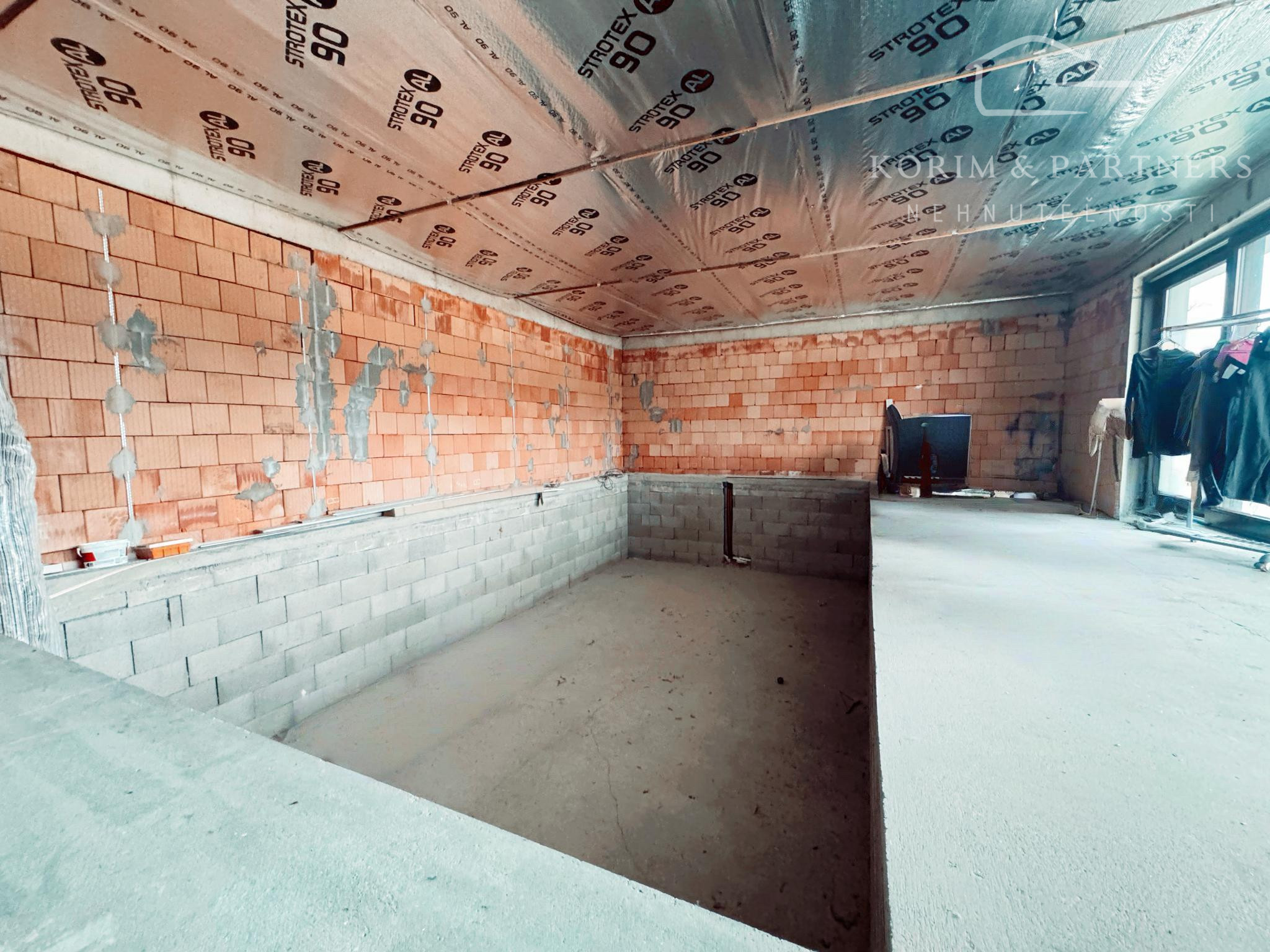 Na pozemku s výmerou 3 356 m² stojí veľkorysá novostavba s podlahovou plochou 572 m², vytvorená v modernom duchu, podporená tradičnými materiálmi prvotriednej kvality. Konštrukcia je realizovaná z tehlového muriva (Leier) zateplená 10 cm polystyrénom, čo zaručuje nadštandardnú tepelnú stabilitu interiéru. Ústredné kúrenie je podlahové aj s radiátormi, napojené na tepelné čerpadlo. Dlhé zimné večeri a Vianoce obohatí čaro Vianoc príjemné teplo, červeno-žlté svetlo a praskot horiaceho dreva z atipického kozubu.