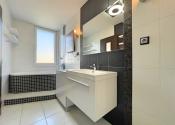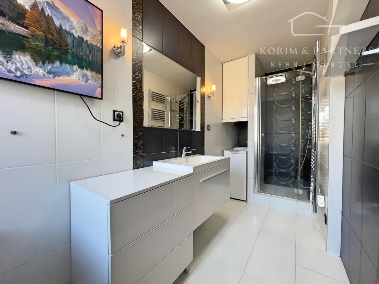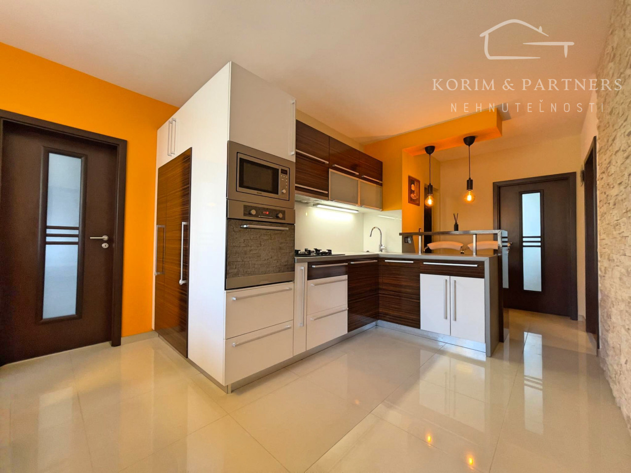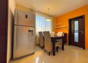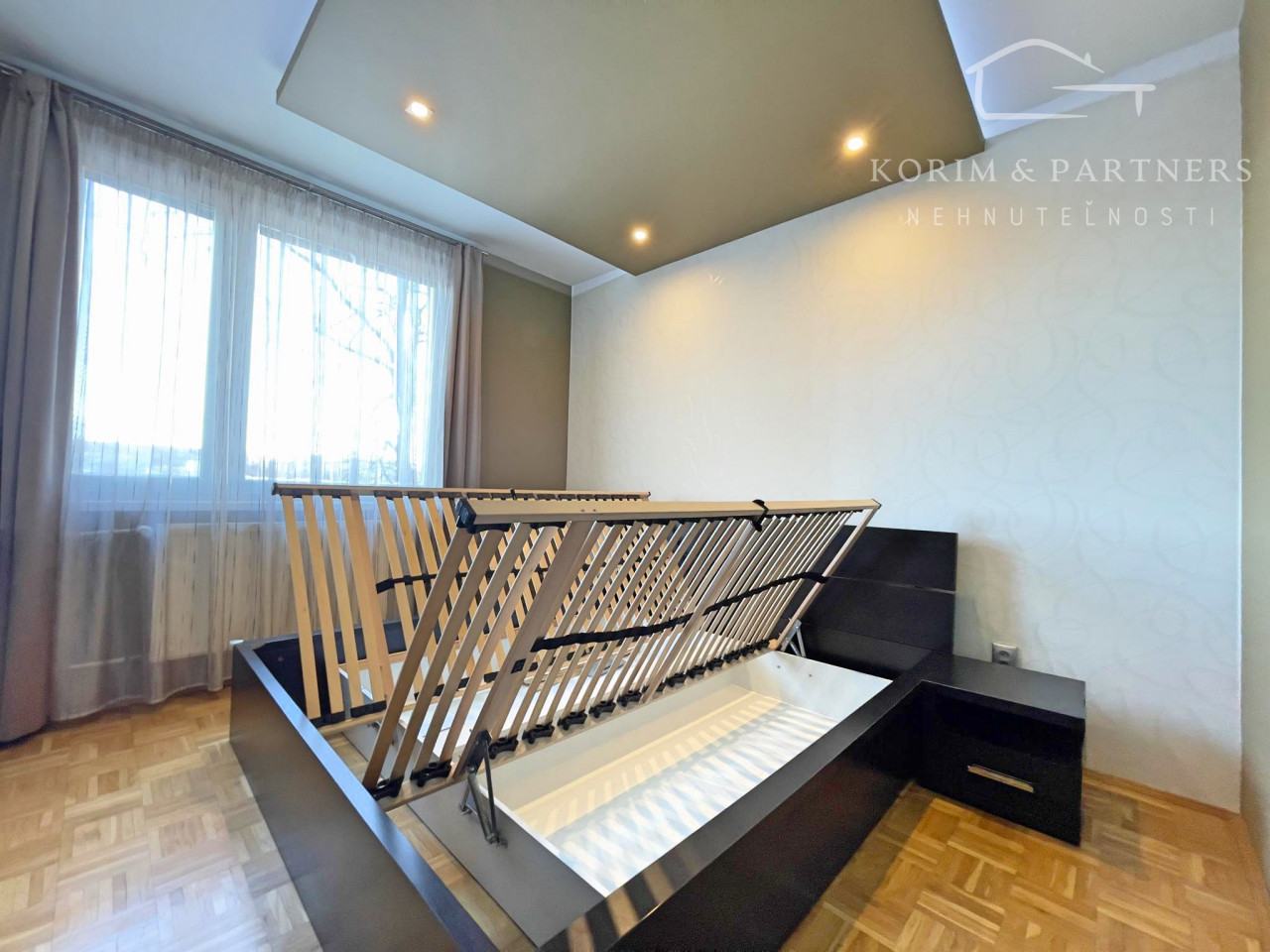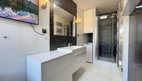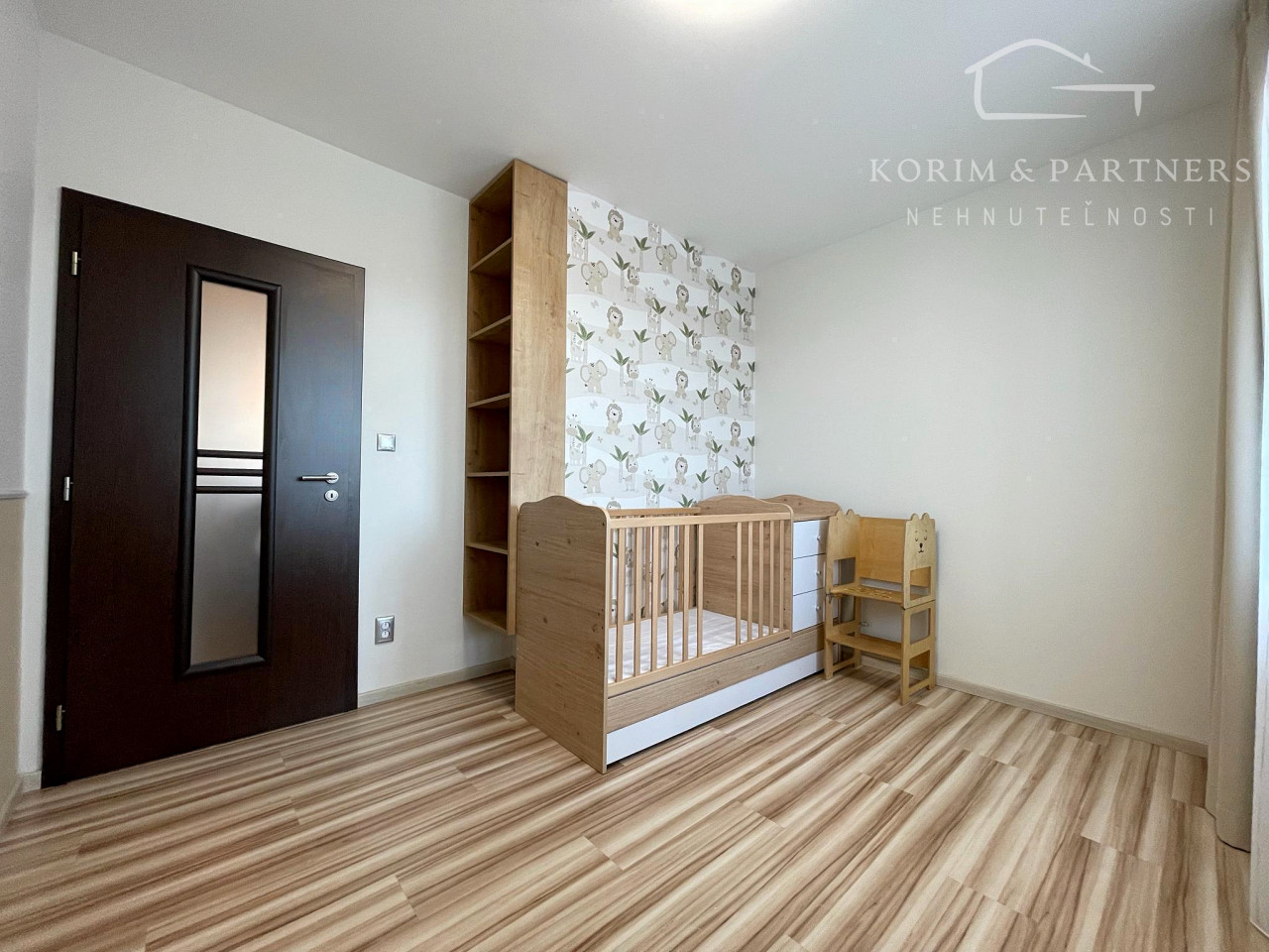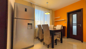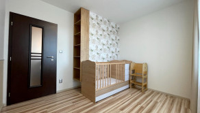 Prvá, menšia izba bola využívaná ako detská izba a disponuje priamym vstupom na loggiu, ktorá ponúka priestor na oddych. Druhá, väčšia izba slúžila ako spálňa a je vybavená veľkou vstavanou skriňou, posteľou a nočnými stolíkmi, vďaka čomu poskytuje komfortné zázemie na každodenný oddych. Tretia miestnosť je svetlá a priestranná obývačka, vybavená modernými stropnými svetlami a smart klimatizáciou, ktorá zabezpečuje príjemnú teplotu počas celého roka. Súčasťou bytu je priestranná a otvorená kuchyňa prepojená s jedálenským priestorom, ktorá je kompletne vybavená, k dispozícii je rúra na pečenie, mikrovlnná rúra, plynový sporák, umývačka riadu, chladnička, praktická špajza a dostatok kuchynských skriniek na uloženie riadu aj potravín. Kúpeľňa ponúka rohovú vaňu aj sprchový kút, práčku a umývadlo so skrinkami, čím spĺňa všetky požiadavky na pohodlné rodinné bývanie.