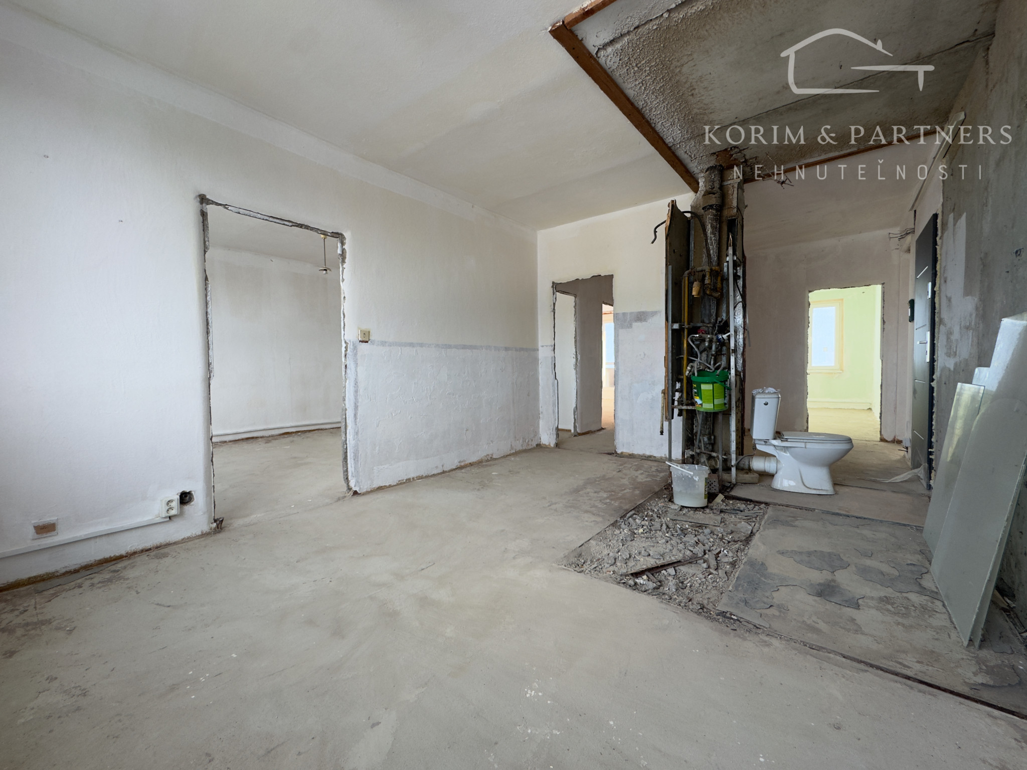 Byt je v štádiu holobytu a vytvára štartovací bod porovnateľný s novostavbou – bez hotových riešení, s plnou slobodou dokončenia podľa vlastných potrieb a štýlu.