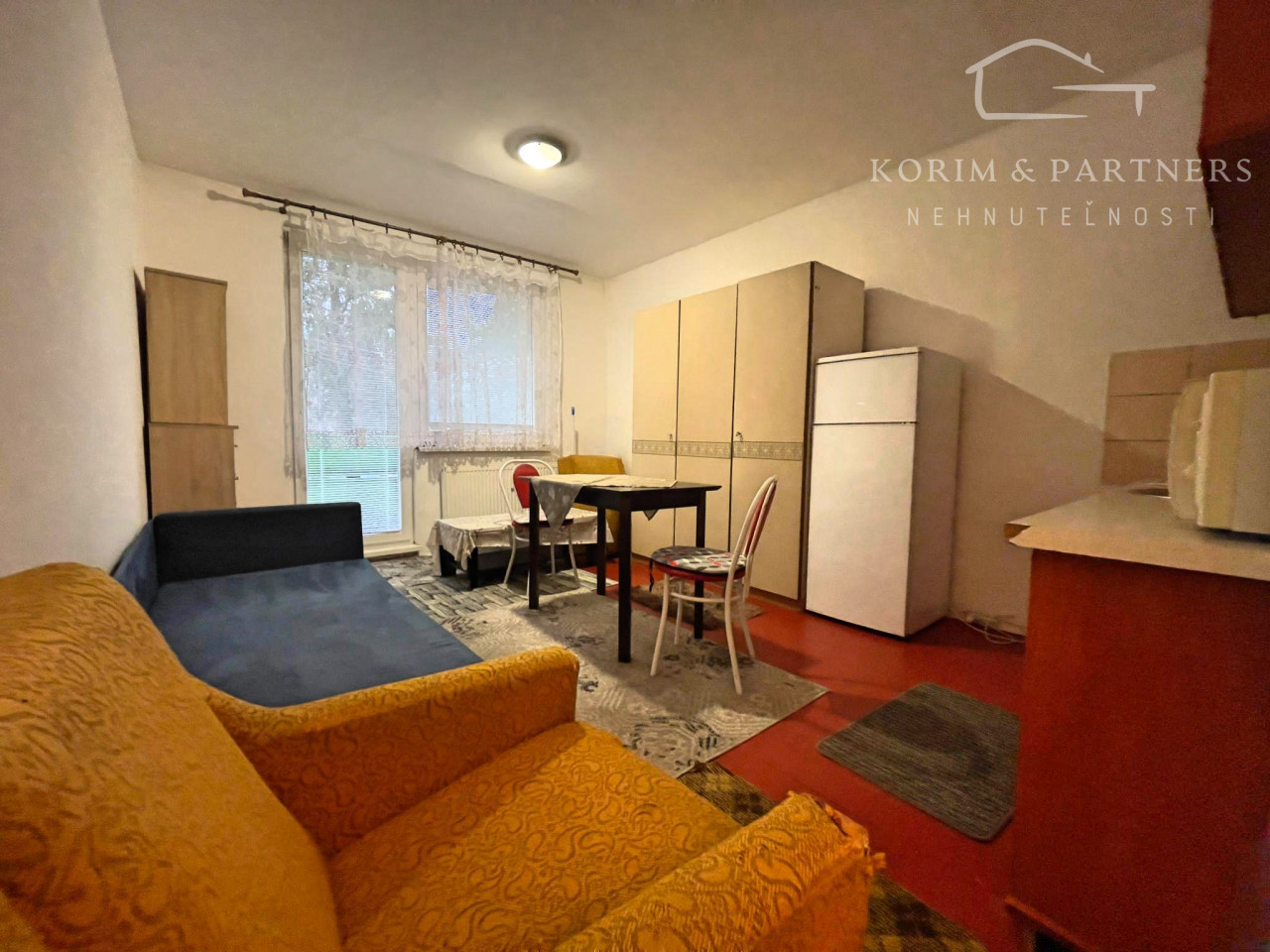 Byt pozostáva z predsiene, kúpeľne s vaňou a WC, izby spojenej s kuchynským kútom a balkónom, kde si viete vytvoriť takú atmosféru, akú máte radi. Plastové okná zabezpečujú lepší komfort bývania a pokojnejšie prostredie. Kúpeľňa prešla staršou rekonštrukciou, je udržiavaná a pôsobí čisto a prakticky. K bytu patrí aj pivnica, ktorá poskytuje uložný priestor na veci ktoré nepotrebujete každý deň a balkón.
