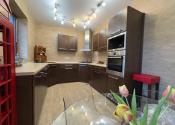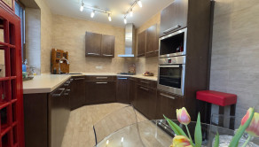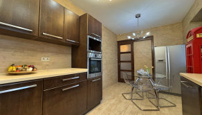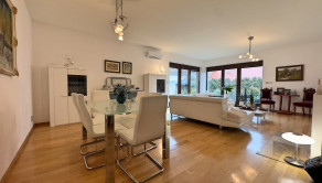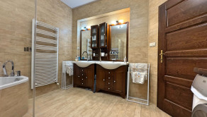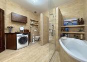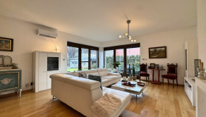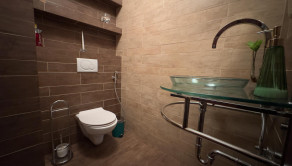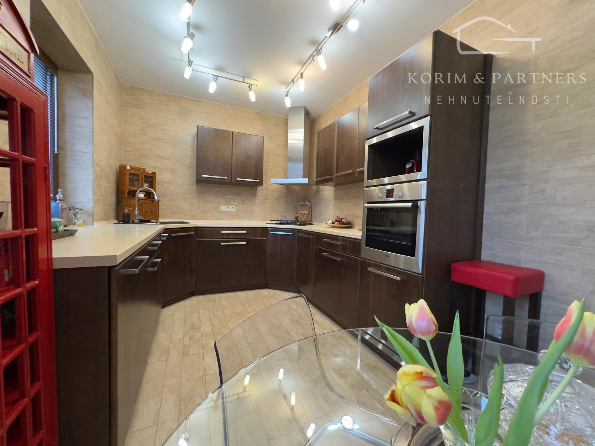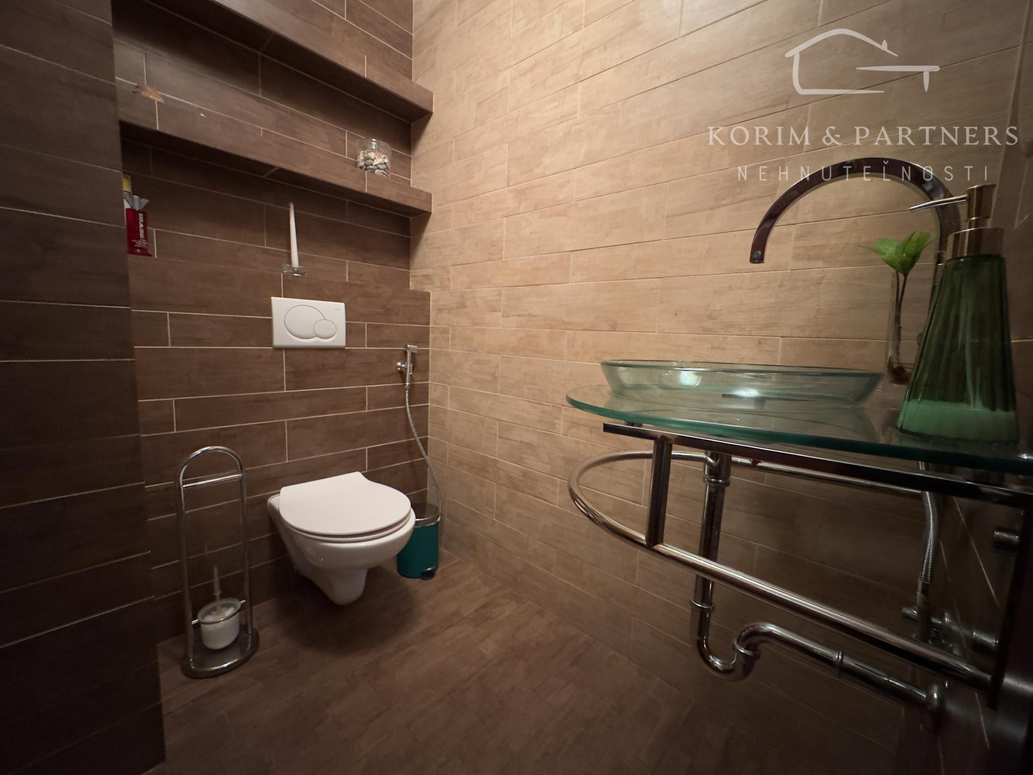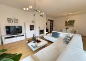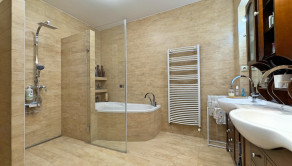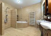 Podlahy: Kombinácia prémiovej drevenej podlahy (pocit tepla) a kvalitnej dlažby (vysoká odolnosť).