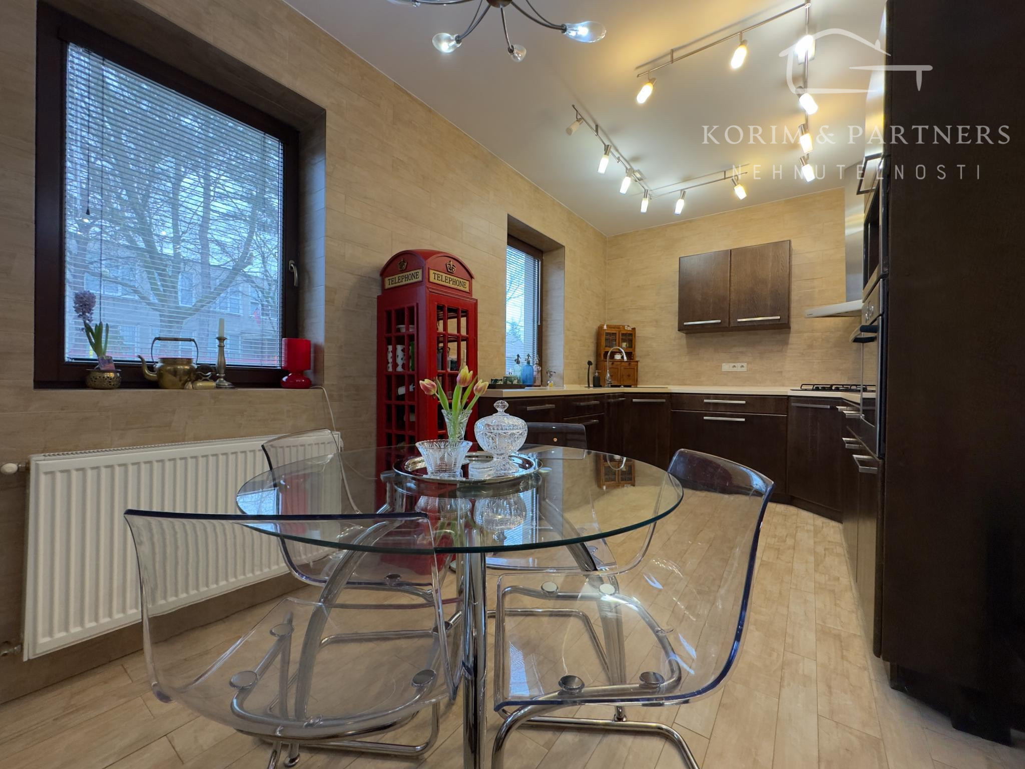 Kúrenie: Kombinácia centrálneho kotla a podlahového vykurovania.