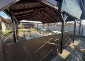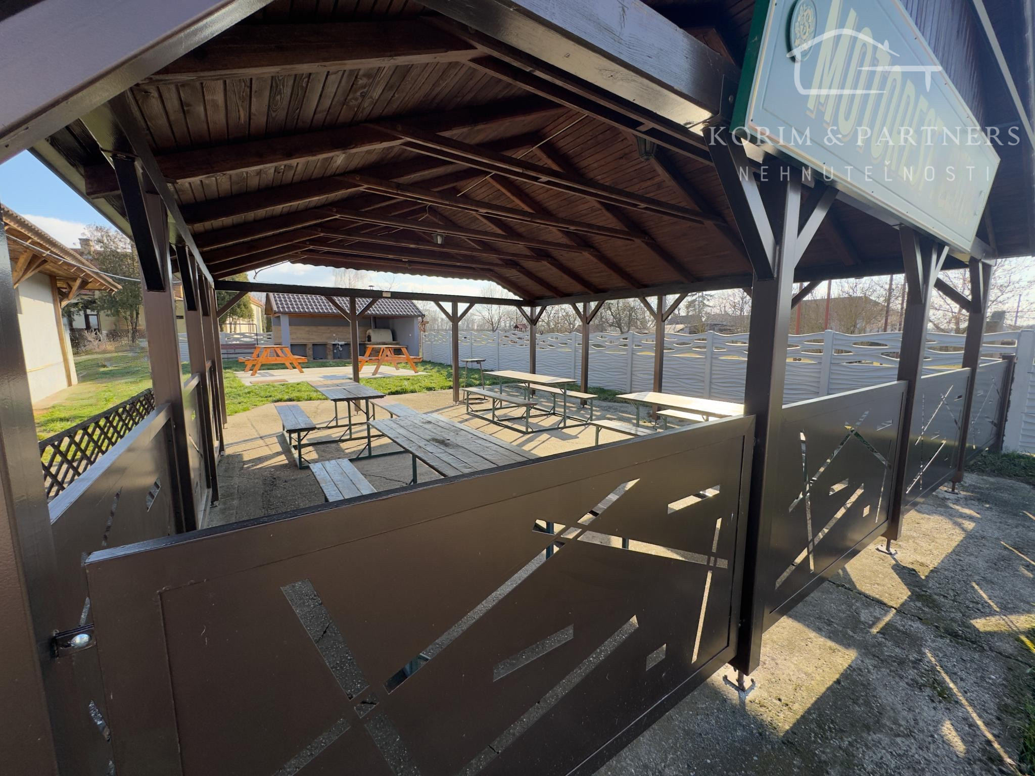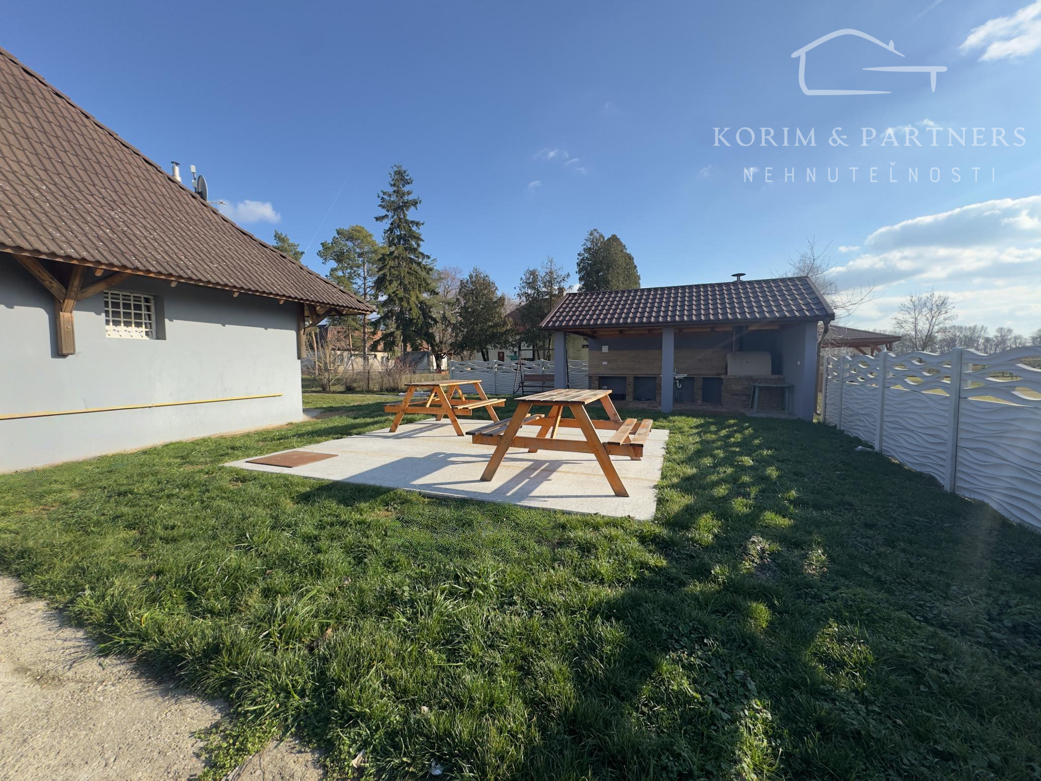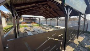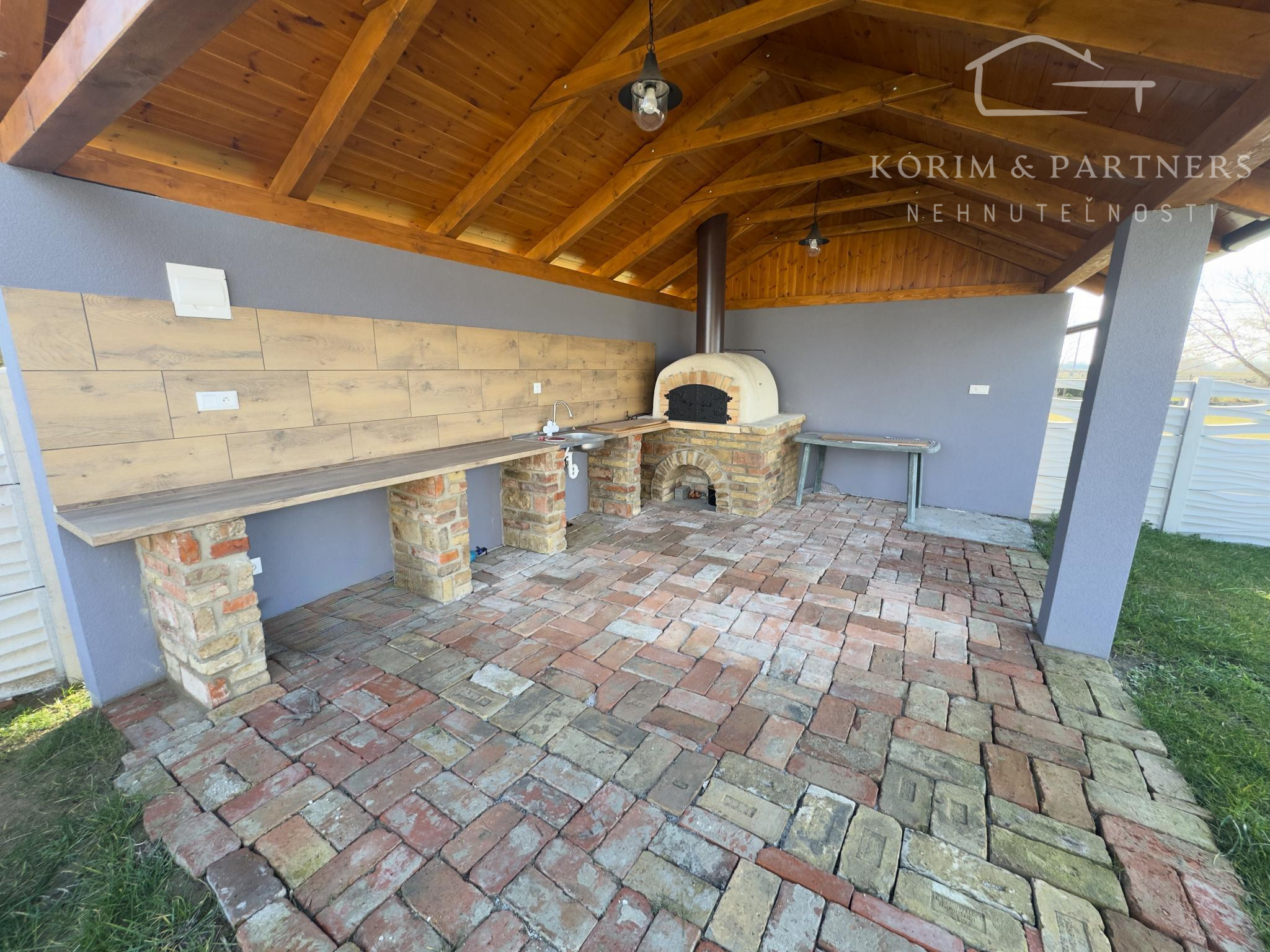 Krytý altánok. Murovaná pec. Vonkajšie sedenie. Uzavretý pozemok. Priestor kde sa stretávajú a zabávajú ľudia.
