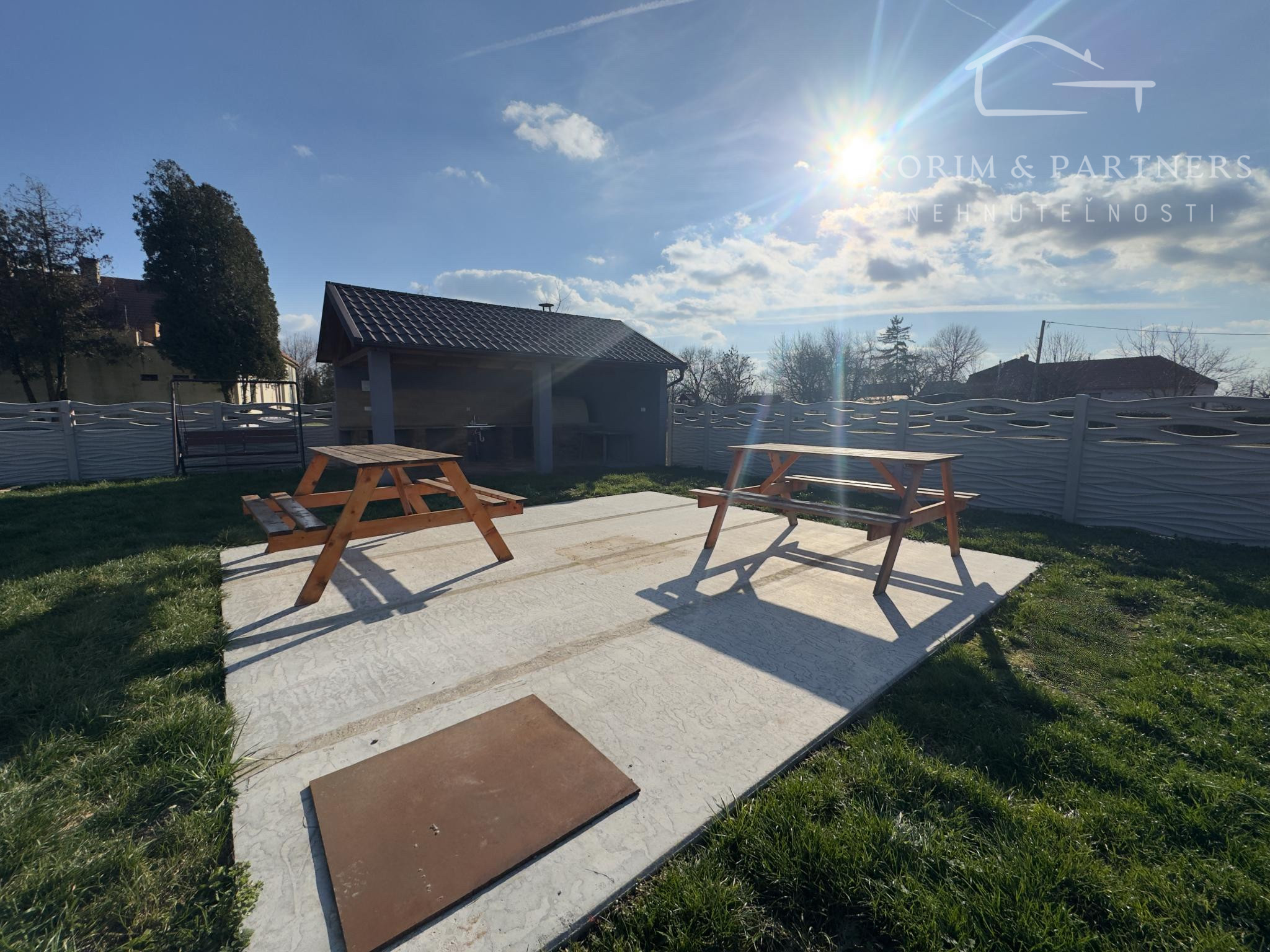 • veľký pozemok s altánkom a vonkajším sedením, samostatné vonkajšie sedenie