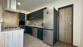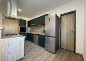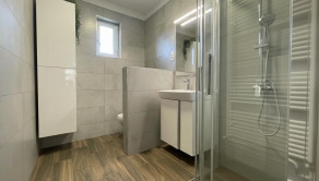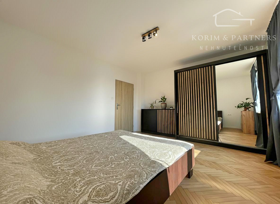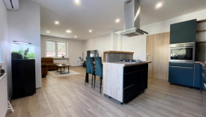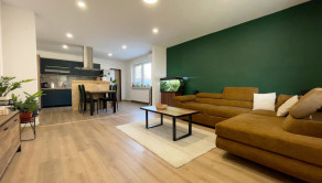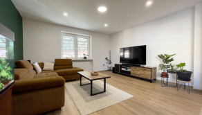 Dom s úžitkovou plochou 150 m² prešiel takmer kompletnou rekonštrukciou interiéru a je nanovo zariadený, čo umožňuje okamžité bývanie bez ďalších úprav. Dispozícia je praktická a funkčná: vstupná chodba, dve veľké spálne, kúpeľňa a priestranná kuchyňa prepojená s obývačkou, ktorá tvorí hlavný denný priestor.