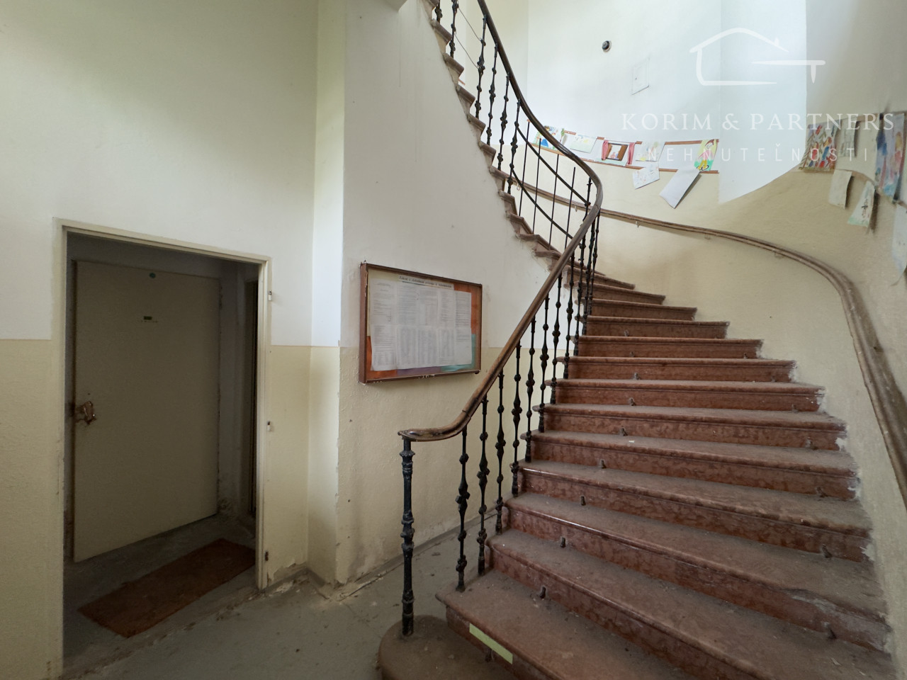 Na prvé poschodie vedie pôvodné kamenné polotočivé schodisko, ktoré dodáva priestoru charakter a hodnotu.
